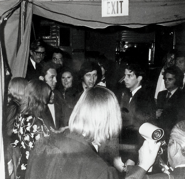 Flanked by security, the Beatle walks through a Grammy Awards tent in Hollywood, repped by NW. "It was tough getting a turnout" (Norm)